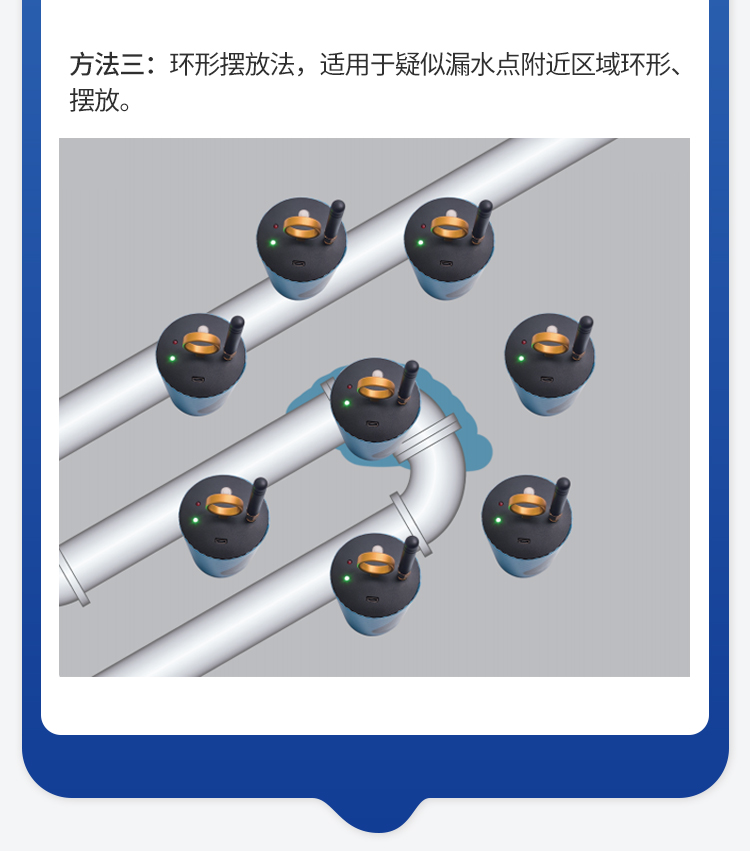 1、采用B-P算法技术,无线监测传感器在未知管道走向情况下准确定位漏水点。