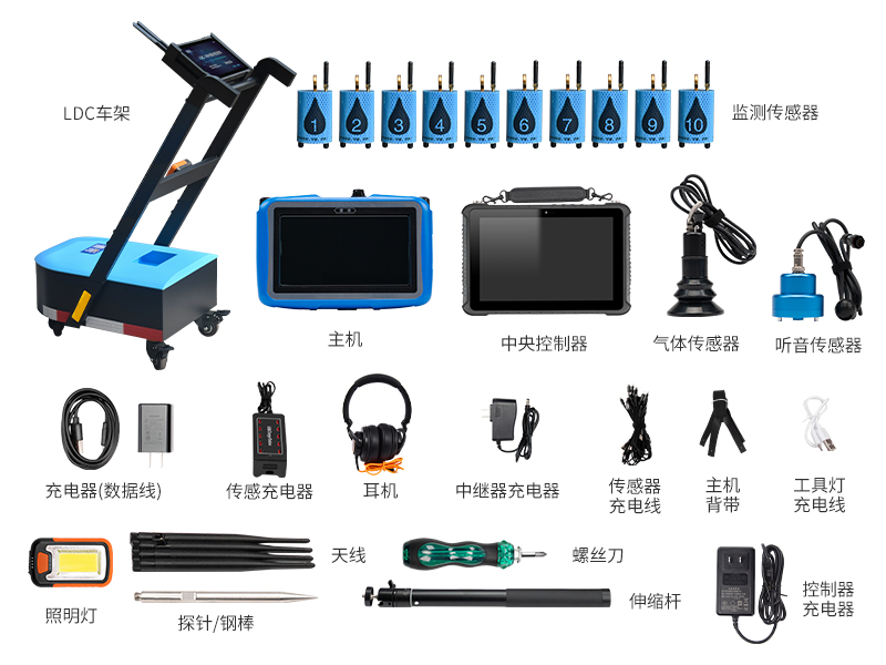 该设备采用B-P算法技术,配备20个无线监测传感器收集不同区域数据,通过信号中继器无线传输到中央控制器进行高效快速分析,从而实现自动判断,自动甄别漏水点。同时还可实时录音,采集的数据可以导出保存,方便测漏报告的制作,这些功能使得巡查管理工作更加的便捷。