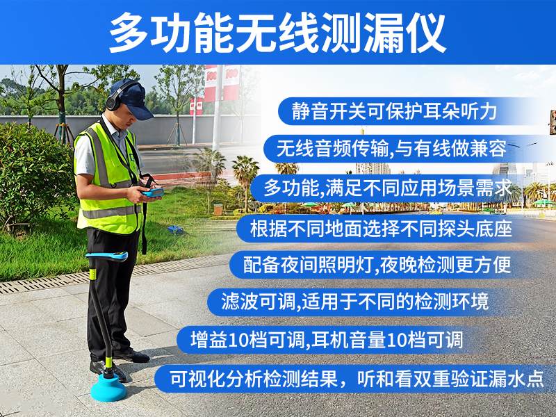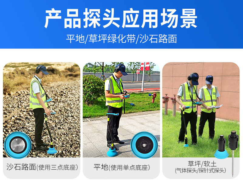 PQ-BT30 系列多功能无线测漏仪是我院自主研发,集气体检测、声波检测、寻管定位三种功能于一体的新一代多功能无线测漏仪,该系列仪器一方面通过对漏损处声音信号或管道泄漏处气体的采集分析,有效便捷的解决外网压力管道的漏损难题,另一方面通过在管道接口处安装发声装置,还可精确定位地下金属及非金属管道的位置及走向,适用于 外网自来水、消防、供暖管道的漏损和管道走向的检测及巡查。