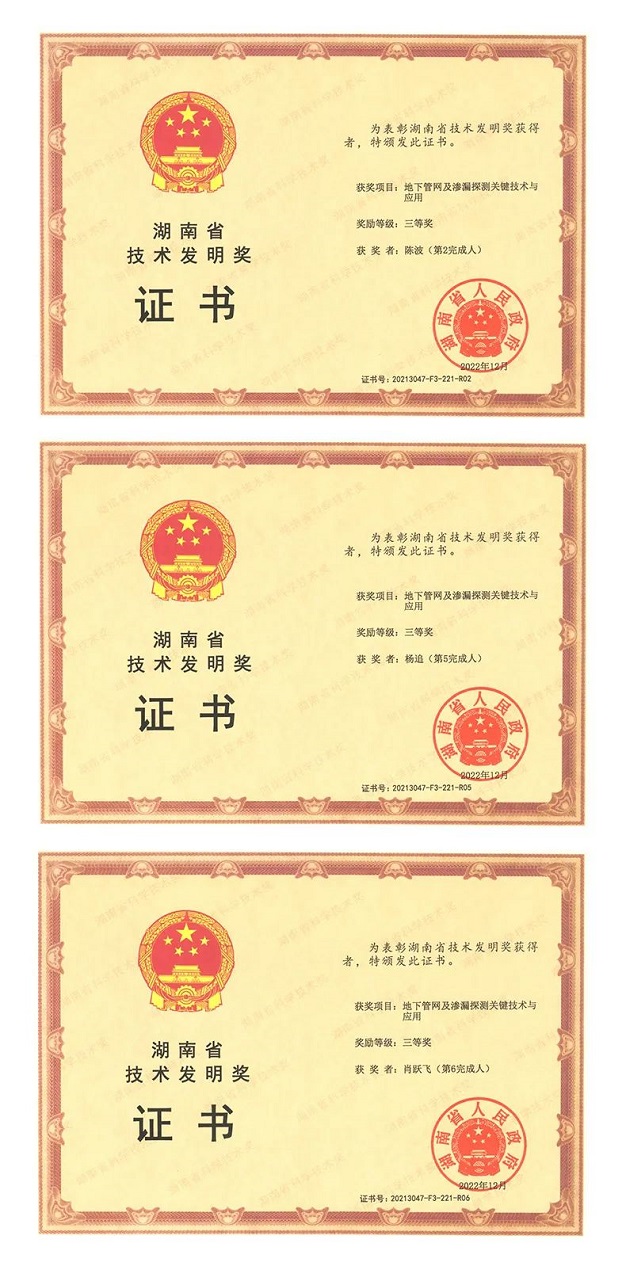 湖南省委副书记、省长毛伟明出席大会并为获奖代表颁奖。我院开发的“地下管网及渗漏探测关键技术与应用”项目获得《湖南省技术发明奖》殊荣。