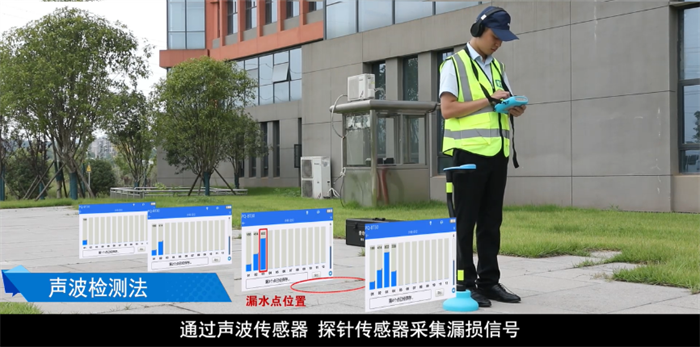 气体示踪法的基本原理是将示踪气体注入已打压试验完成并确认有泄漏的管道,通过气体检测探头来检测示踪气体,气体泄漏位置就是管道漏水的位置。