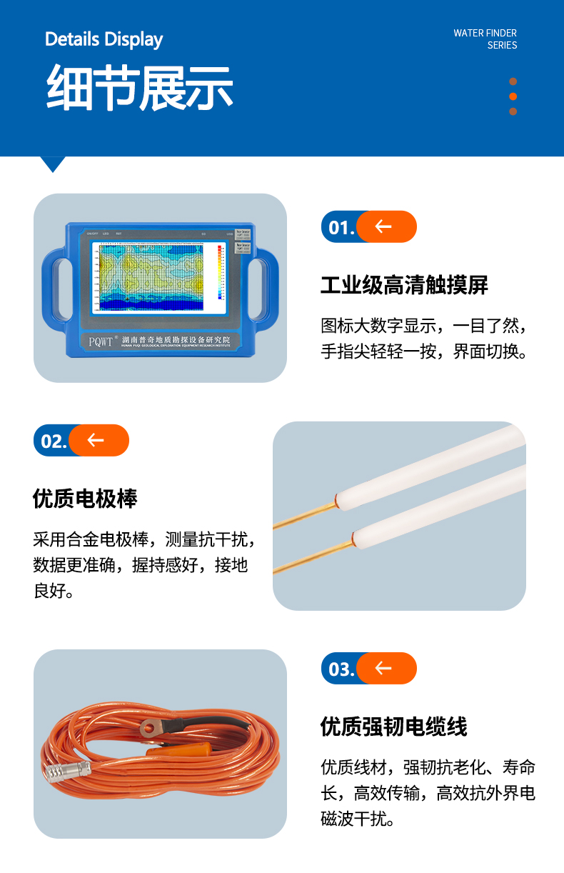 普奇PQWT-S150是湖南普奇地质勘探设备研究院、湖南普奇水环境研究院联合自主研发的天然电场智能化一键成图打井找水仪。测量深度可达到0-150米。普奇S150是天然电场智能化一键成图打井找水仪是利用天然电场作为工作场源,以地下岩矿石或地下水的电阻率差异为基础,在地面上测量天然电场N个不同频率的电场分量,根据它们的变化规律来研究不同的地质体产生的异常变化情况,达到解决地质问题的一种电法勘探方法。