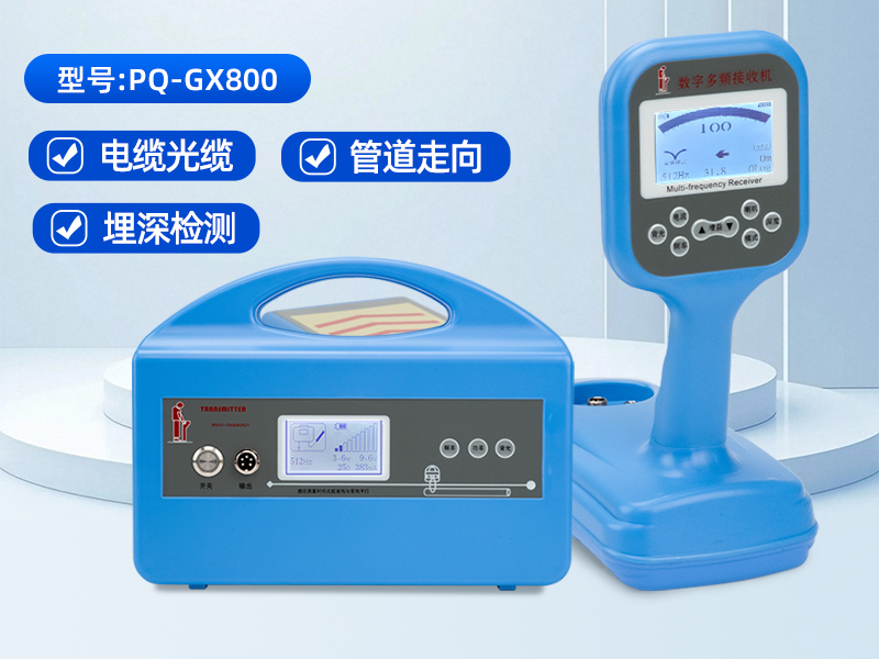 PQWT-GX800地下管线探测仪,是一套高性能地下金属管线探测系统,由信号发射机和接收机组成,可用于金属管线、地下电缆的路径探测、管线普查和深度测量,以及管道绝缘破损和部分类型电缆故障的查找。
