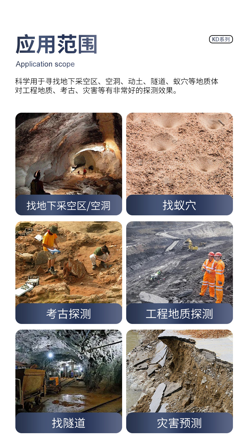 探矿、找水、空洞探测、找矿、工程勘探、地热探测、考古、测井、测水、找水器、探矿器、找矿等。