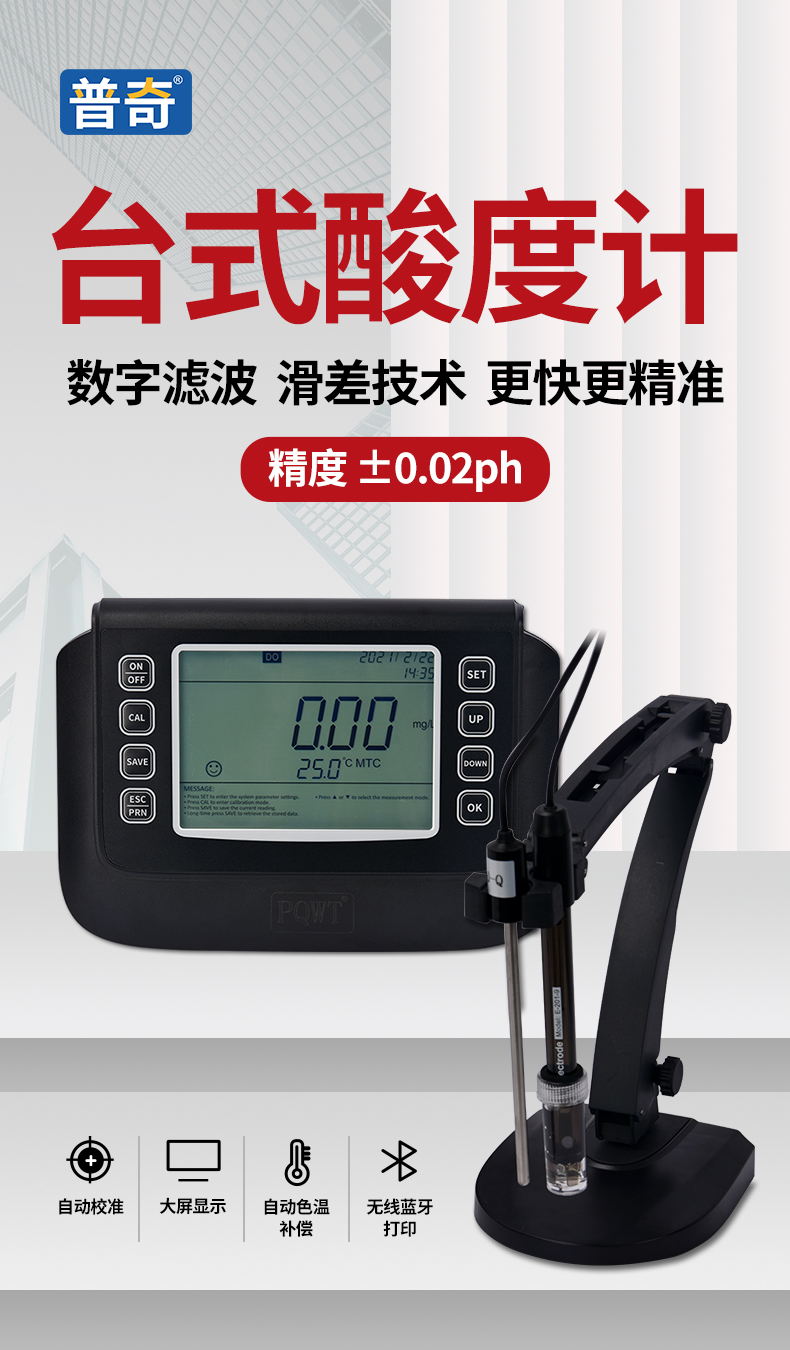 普奇PQ10台式触摸式酸度计是先进的电子技术、传感器技术和软件设计的完美组合。本仪器可用于高精度测量水溶液的pH和温度等参数,是性价比最优的pH测量仪。适用于工矿企业、电厂和环保等行业。