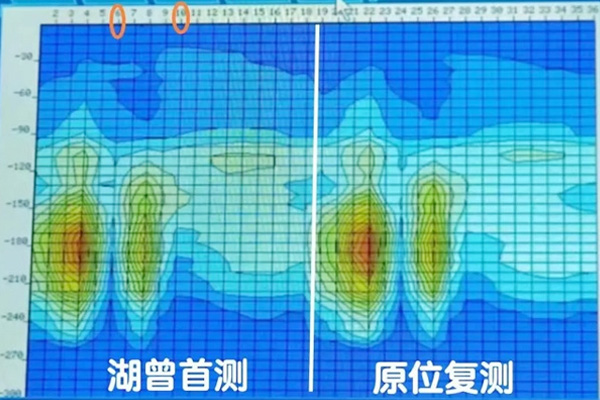 在有回填土的地方,有时接地条件不均匀,在接地电阻变化大的测点也会出现异常。只要非构造性的高值或低值异常排除不了,照样会打干眼。这些情况只做原位复测是排除不了的,一致性再好也可能没有水。这是因为原位复测还是测的那些点位,上面说的那些影响因素没有任何改变,再原位测一遍图件一般不会改变。